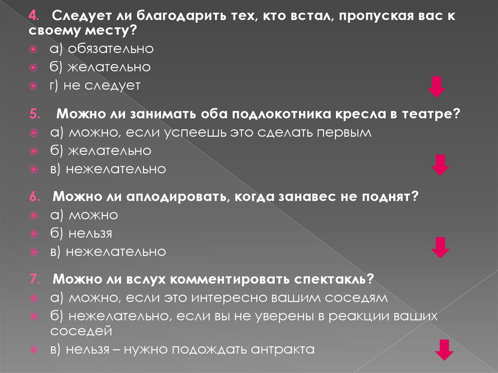 4. Следует ли благодарить тех, кто встал, пропуская вас ксвоему месту?