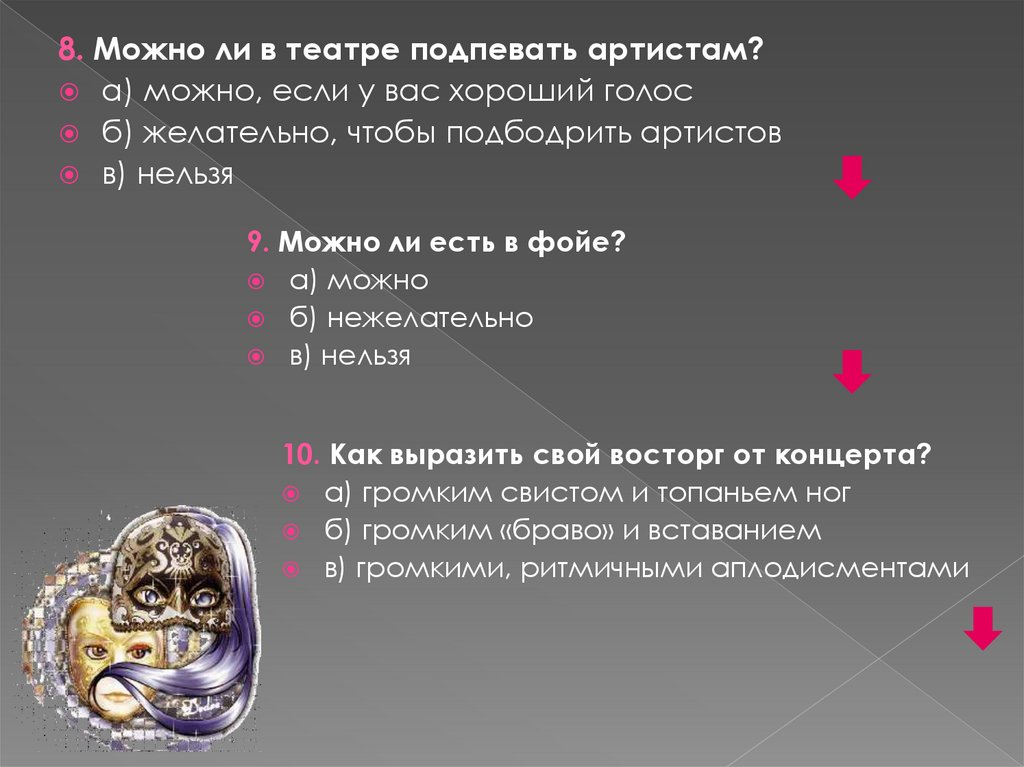 8. Можно ли в театре подпевать артистам?а) можно, если у вас хороший голос