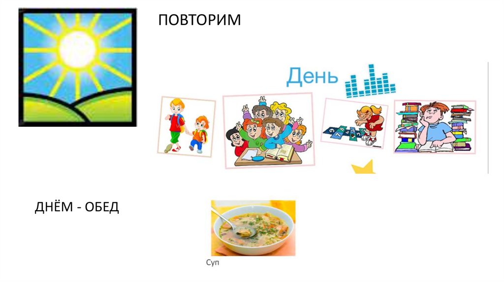 • Ещё раз повторите занятия днём, в том числе – обед.