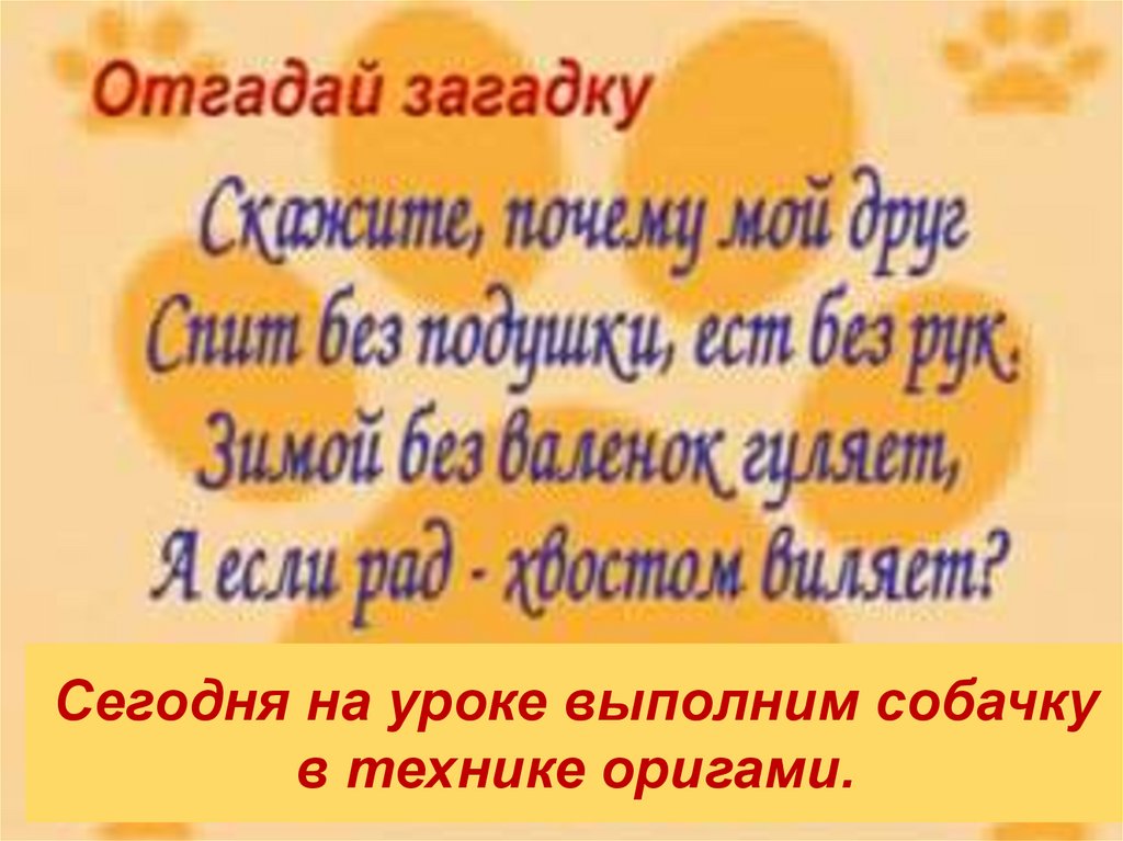 Сегодня на уроке выполним собачку