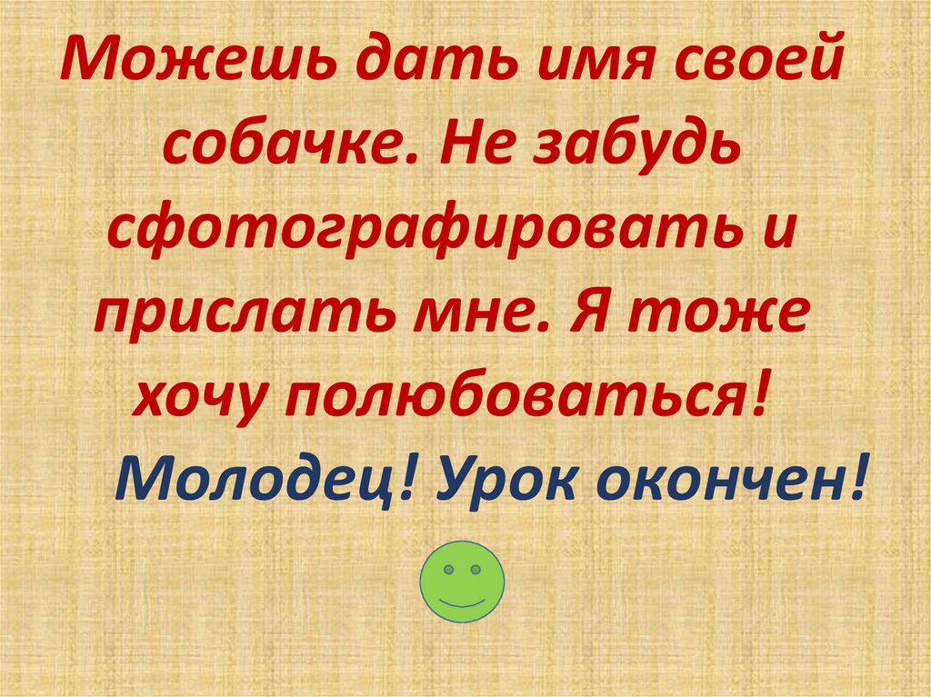 собачке. Не забудь