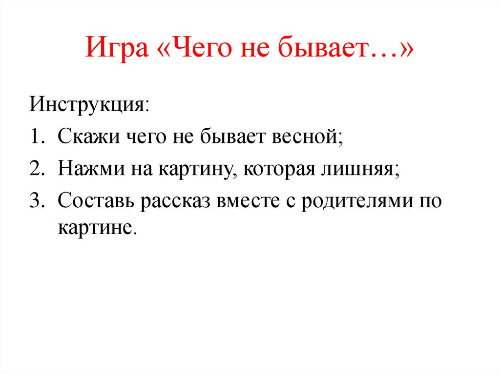 1. Скажи чего не бывает весной;
