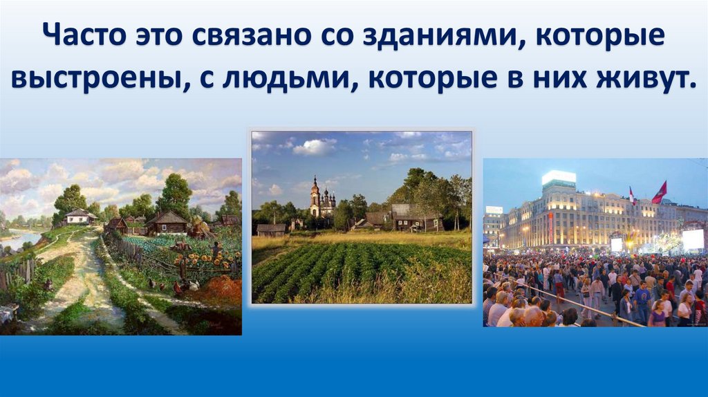 Часто это связано со зданиями, которыевыстроены, с людьми, которые в них живут.