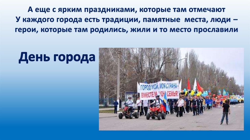 А еще с ярким праздниками, которые там отмечаютУ каждого города есть традиции, памятные места, люди –