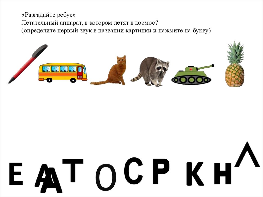 «Разгадайте ребус»Летательный аппарат, в котором летят в космос?