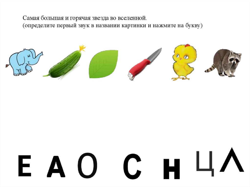 Самая большая и горячая звезда во вселенной.(определите первый звук в названии картинки и нажмите на букву)