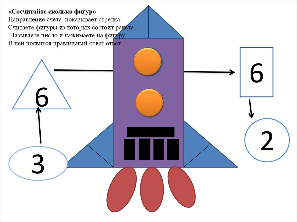 Считаете фигуры из которых состоит ракета.