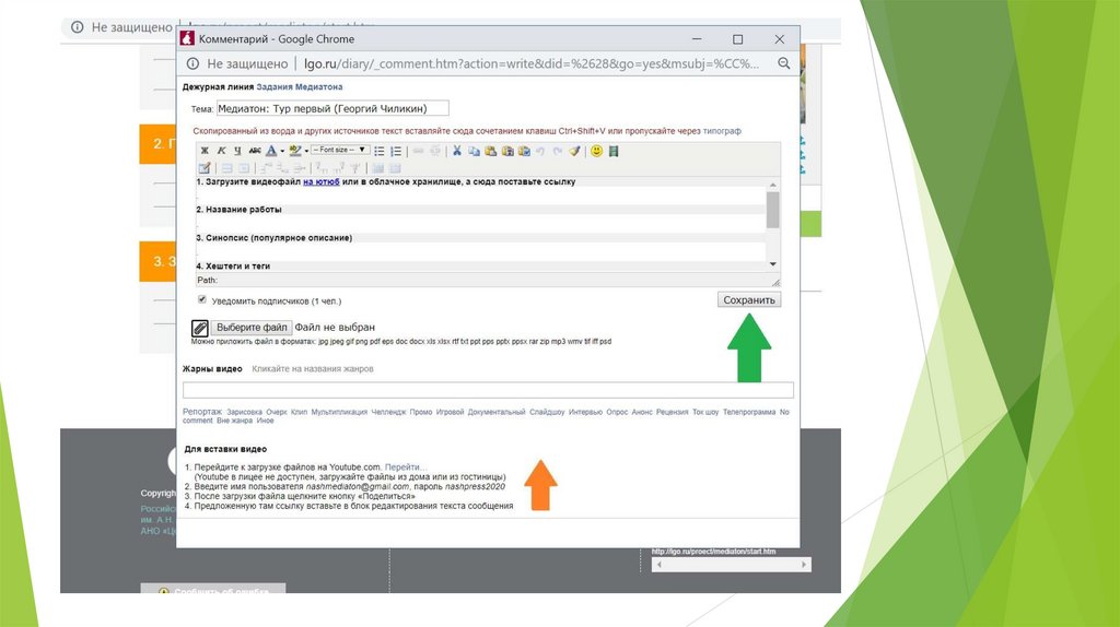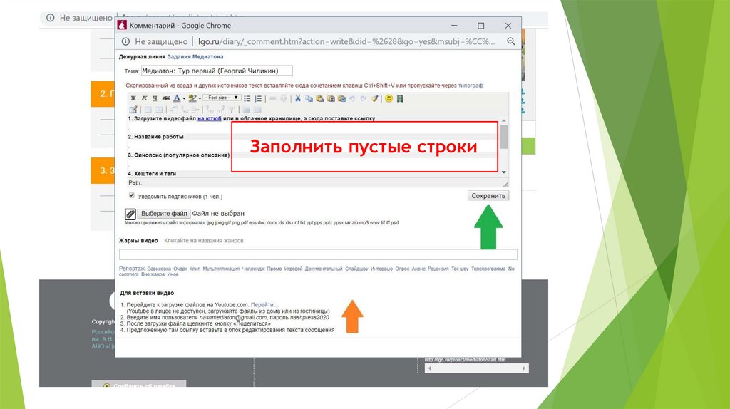 Как выгрузить своё задание на Медиатоне на портале «Школьная пресса» lgo.ru