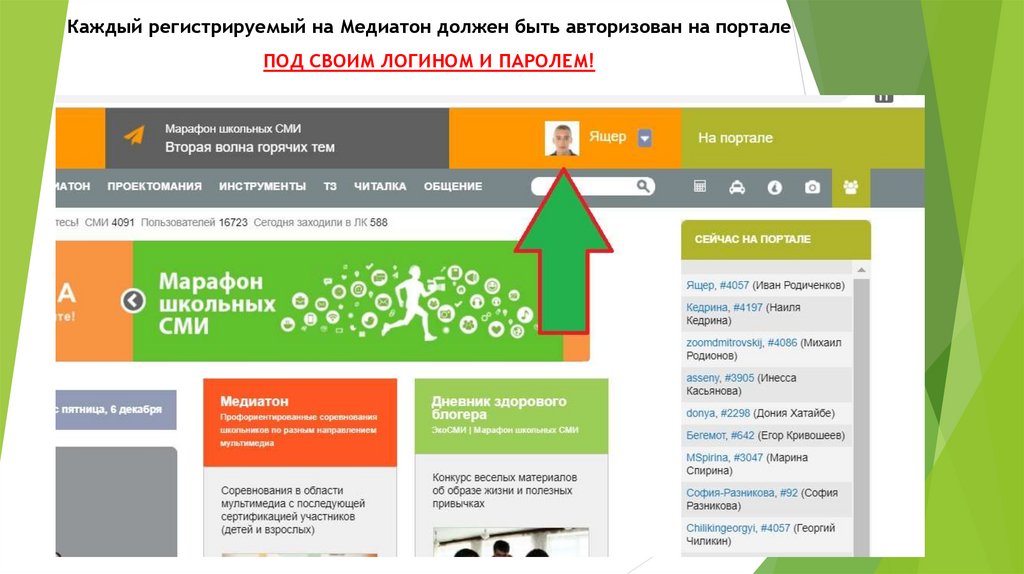 Каждый регистрируемый на Медиатон должен быть авторизован на порталеПОД СВОИМ ЛОГИНОМ И ПАРОЛЕМ!