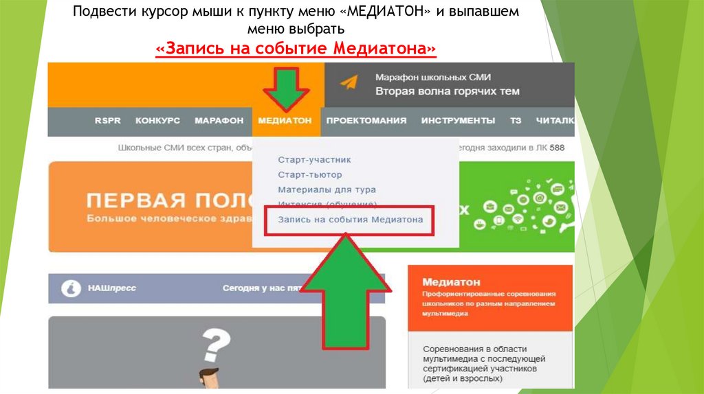 Подвести курсор мыши к пункту меню «МЕДИАТОН» и выпавшемменю выбрать