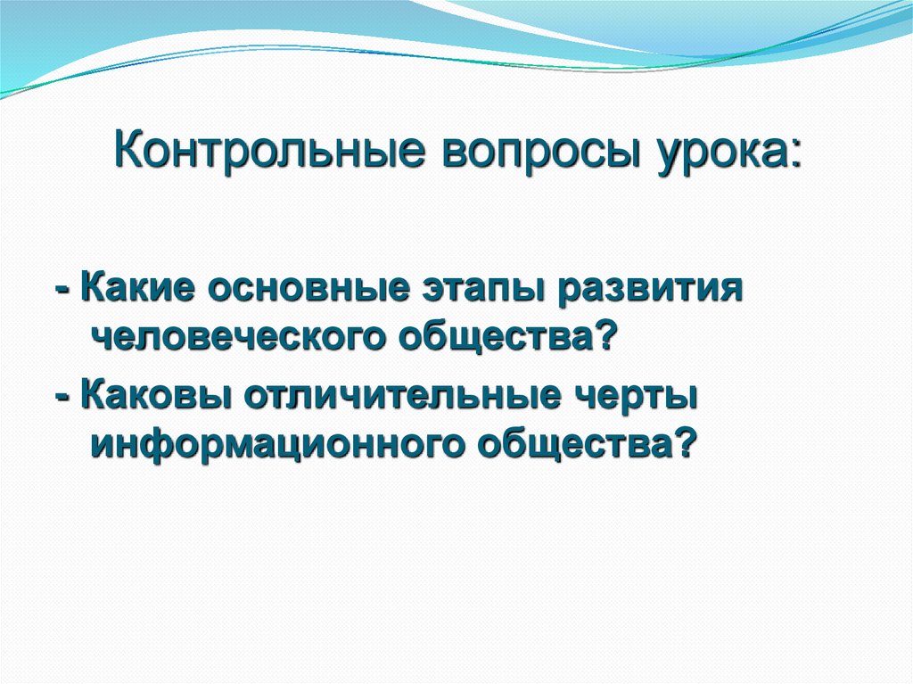 Контрольные вопросы урока:- Какие основные этапы развития