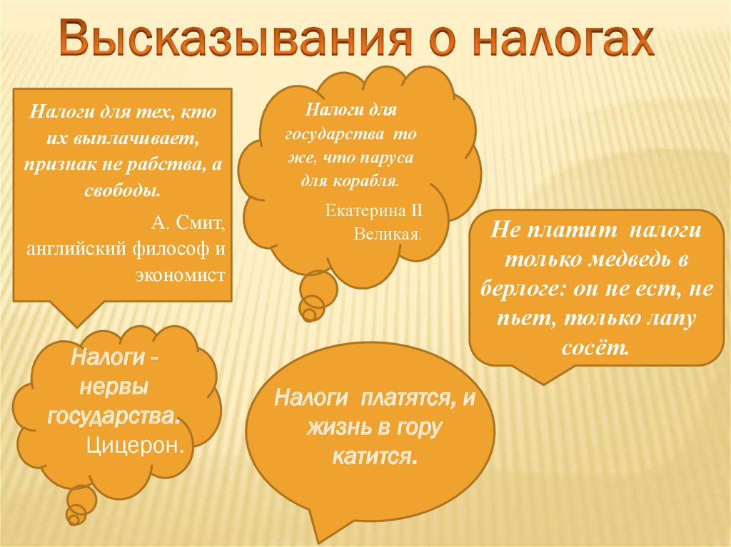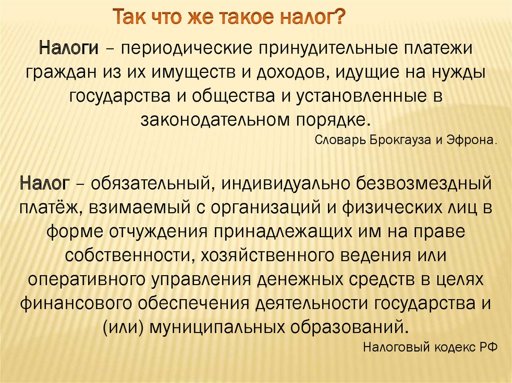Налоги – периодические принудительные платежиграждан из их имуществ и доходов, идущие на нужды