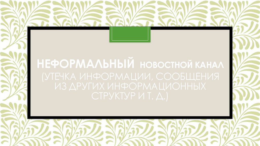 НЕФОРМАЛЬНЫЙ НОВОСТНОЙ КАНАЛНовостная статья