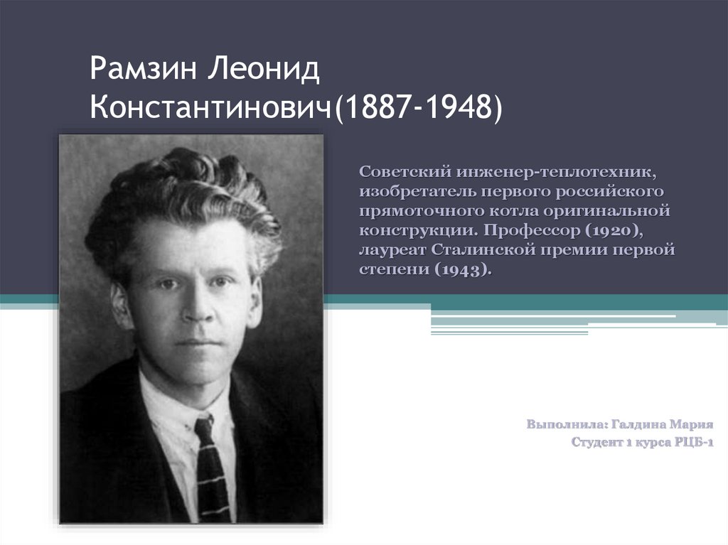 Рамзина (за которое он в 1943 году был удостоен Сталинской премии) позволило
