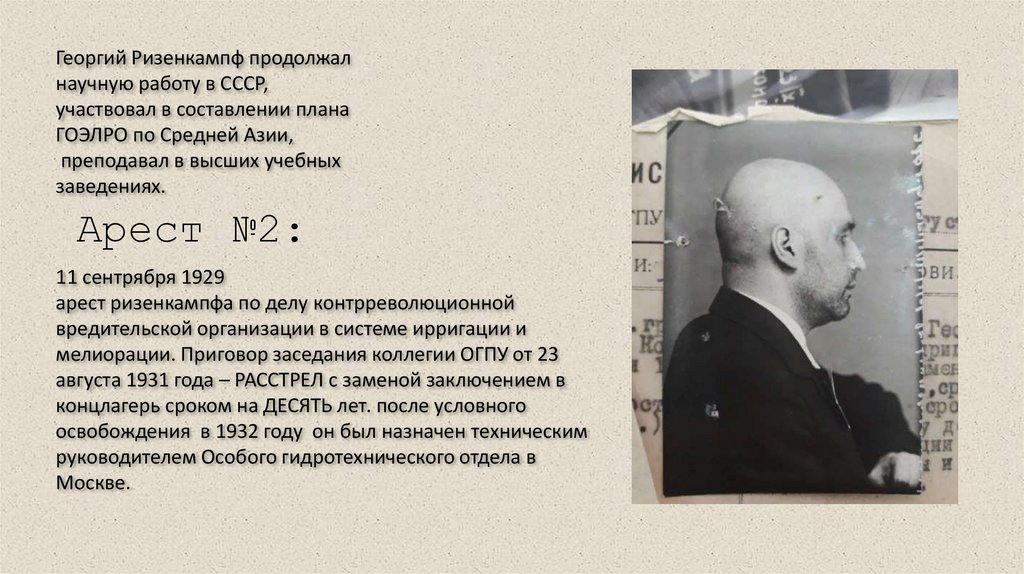 Георгий Ризенкампф продолжалнаучную работу в СССР,