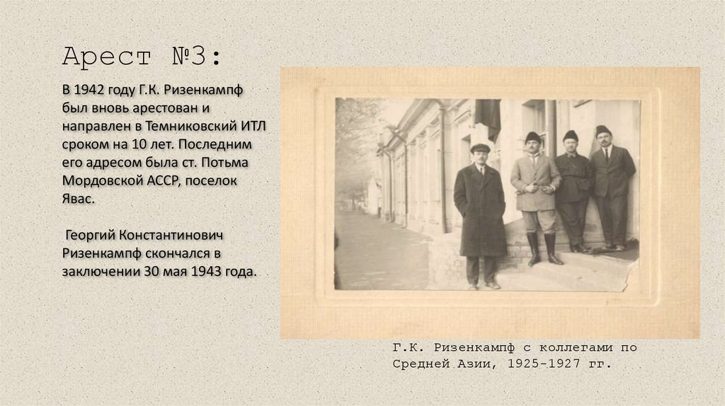 Арест №3:В 1942 году Г.К. Ризенкампф