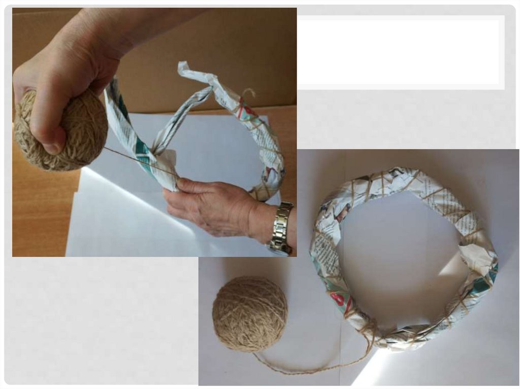 9. «Газетный бублик» обматываем ниткой ( шпагатом) по кругу.