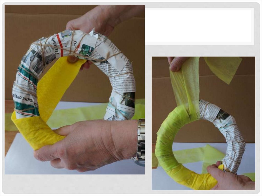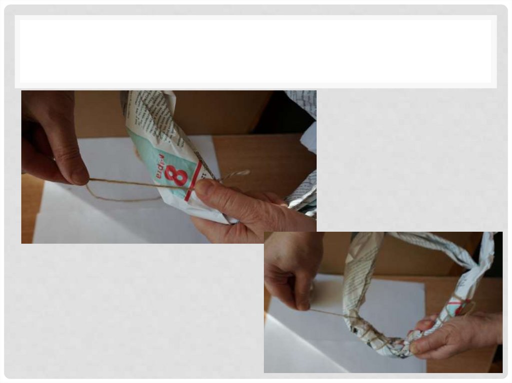 15. Обмотав один слой полосками, закрепляем бумагу ниткой( шпагатом).