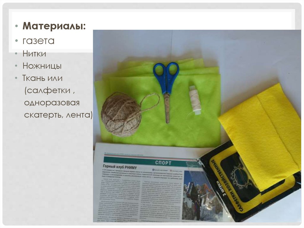 • Для основы- газеты и шпагат ( нитки)