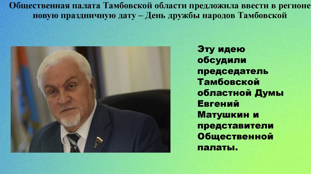 Общественная палата Тамбовской области предложила ввести в регионеновую праздничную дату – День дружбы народов Тамбовской
