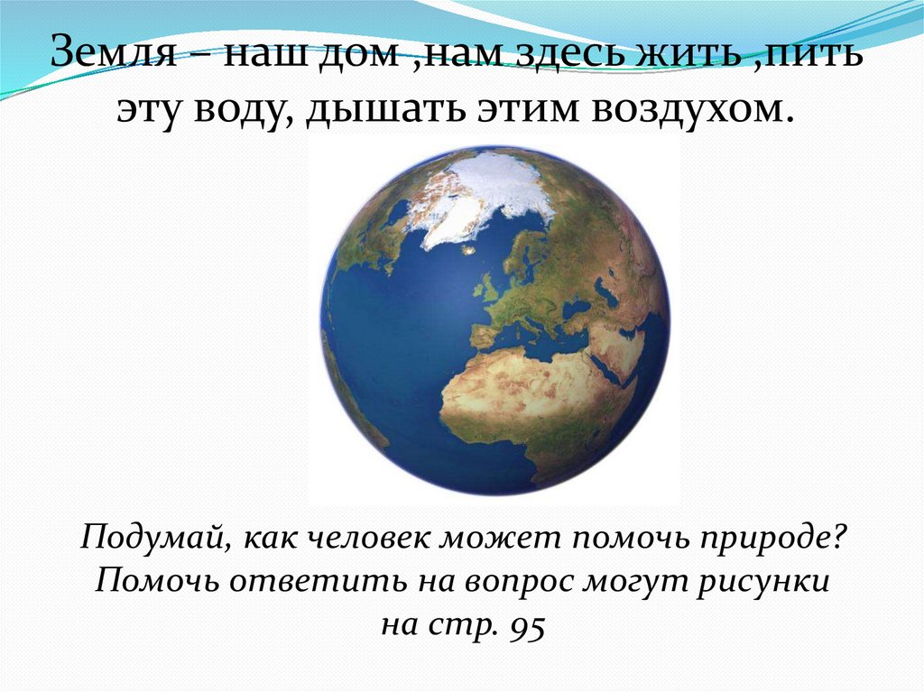 Земля – наш дом ,нам здесь жить ,питьэту воду, дышать этим воздухом.