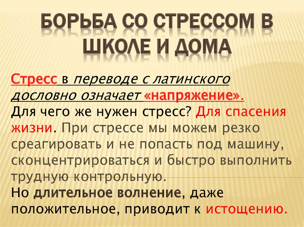 БОРЬБА СО СТРЕССОМ ВШКОЛЕ И ДОМА