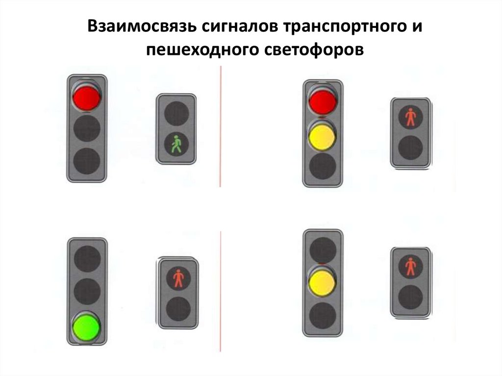 Взаимосвязь сигналов транспортного ипешеходного светофоров