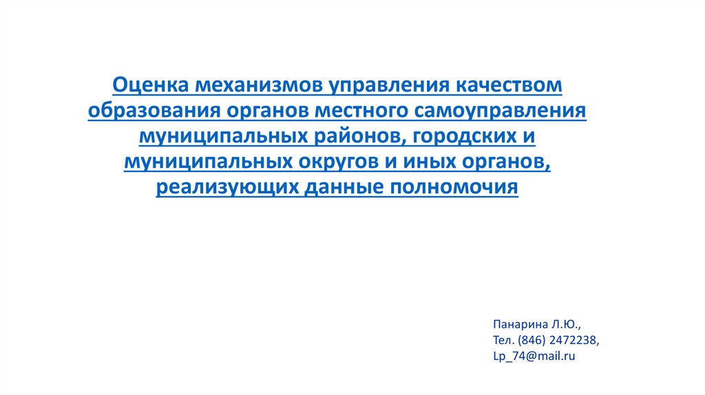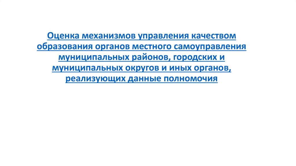 1. Оценка механизмов управления качеством образования органов местного самоуправления муниципальных районов, городских и