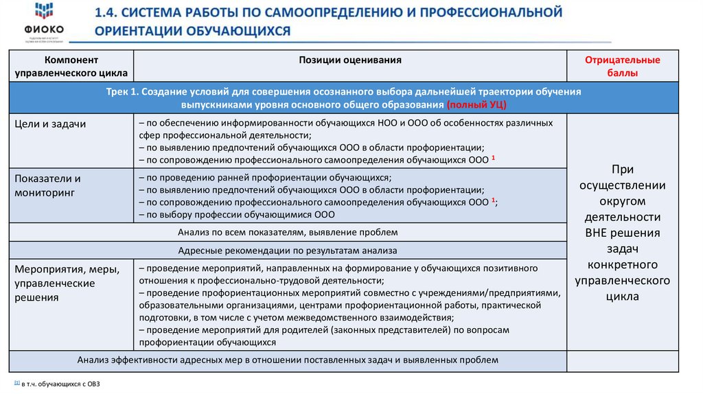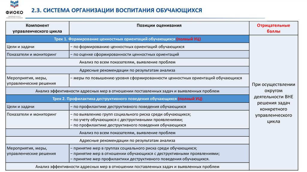 См. описание параметров оценивания по элементам управленческого цикла в Методических