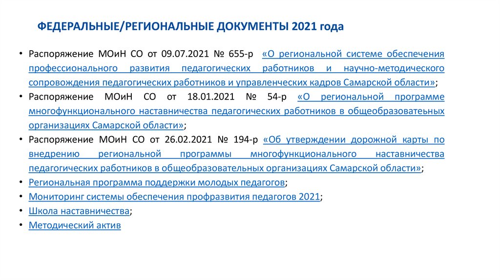• Распоряжение МОиН СО от 09.07.2021 № 655-р «О региональной системе обеспеченияпрофессионального развития педагогических работников и научно-методического