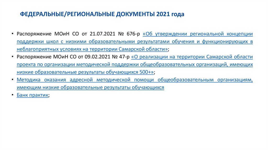 ФЕДЕРАЛЬНЫЕ/РЕГИОНАЛЬНЫЕ ДОКУМЕНТЫ 2021 года
