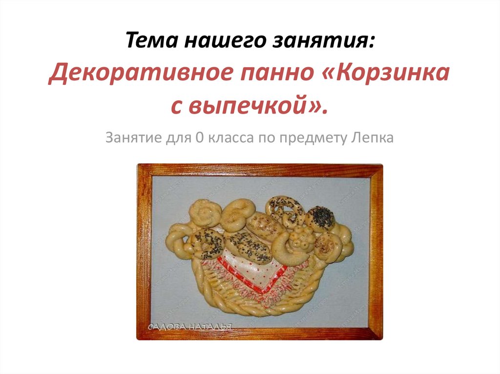 1. Тема нашего занятия: Декоративное панно «Корзинка с выпечкой».