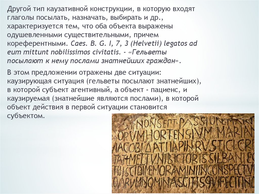 * В латинском языке нет грамматического правила образованиякаузативных глаголов, как в древнеиндийском языке с