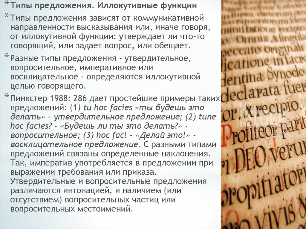 * Типы предложения. Иллокутивные функции* Типы предложения зависят от коммуникативной