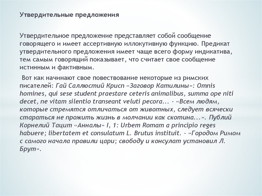 hoc facies? - «Будешь ли ты это делать?» вопросительное; (3) hoc fac! - «Делай это!» восклицательное предложение. С разными типами