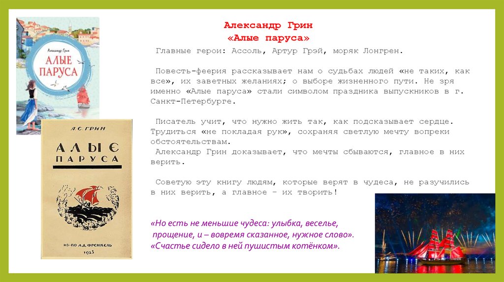 Александр Грин доказывает, что мечты сбываются, главное в них
