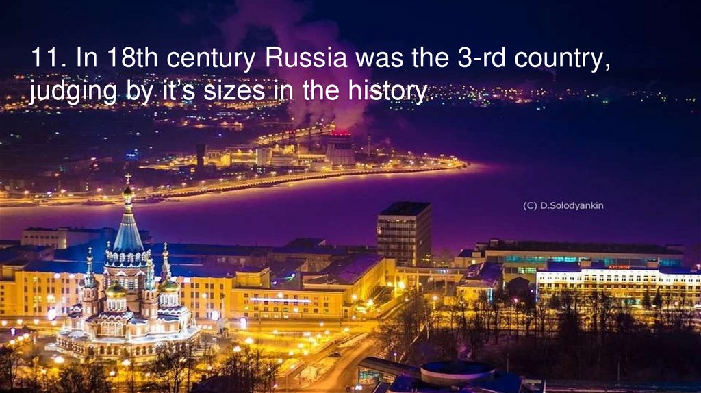 11. In 18th century Russia was the 3-rd country,judging by it’s sizes in the history.