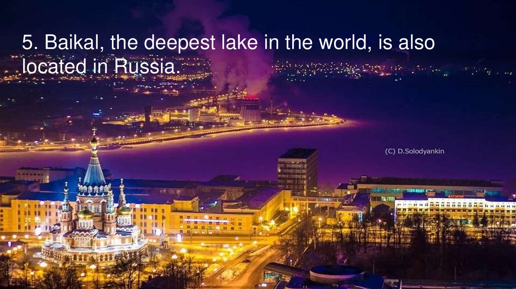 5. Baikal, the deepest lake in the world, is alsolocated in Russia.
