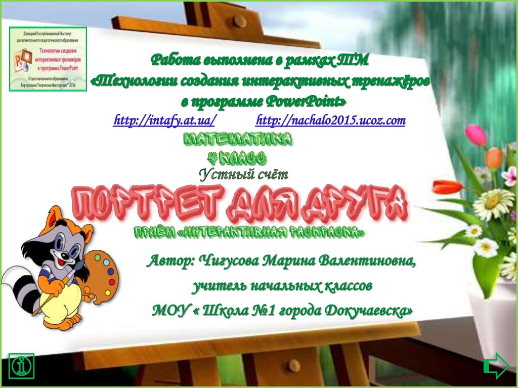Интерактивная раскраска. Портрет для друга. Математика 4 класс. Чигусова М.В