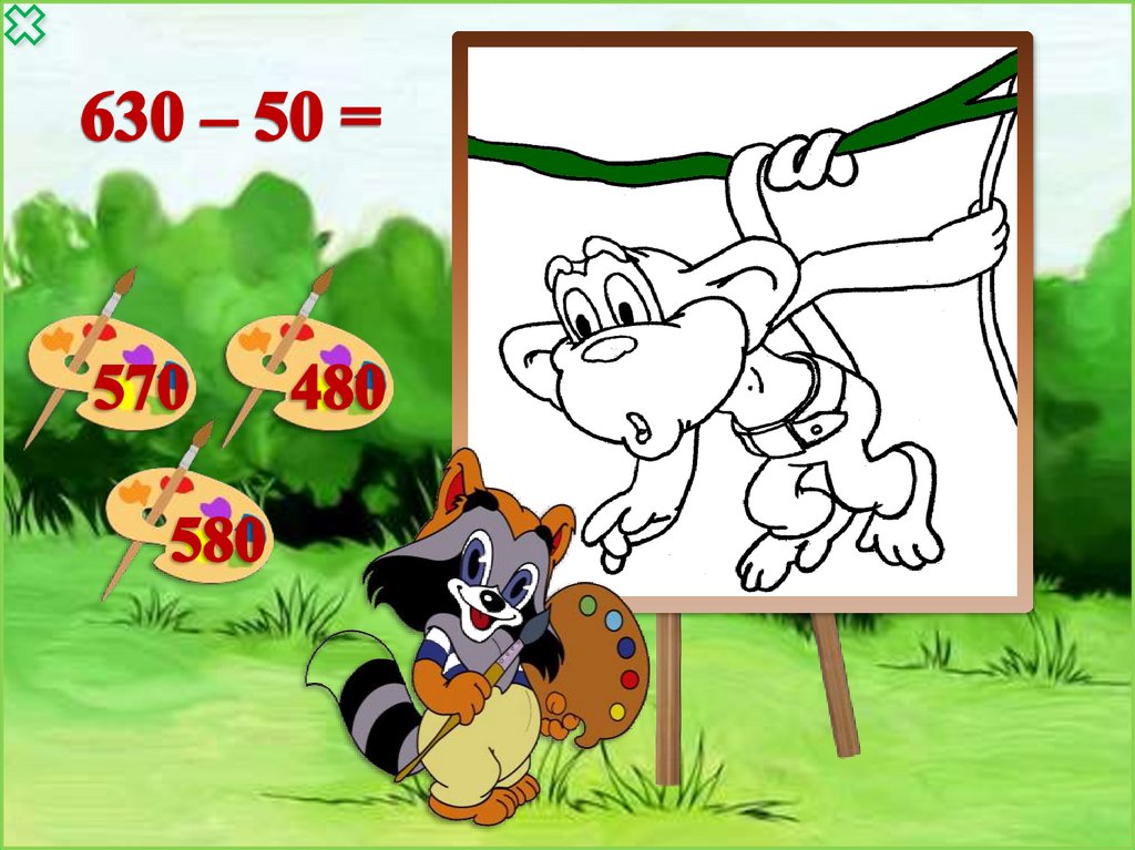 Интерактивная раскраска по математике. Сложение и вычитание круглых десятков
