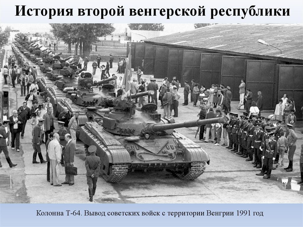 История второй венгерской республикиКолонна Т-64. Вывод советских войск с территории Венгрии 1991 год