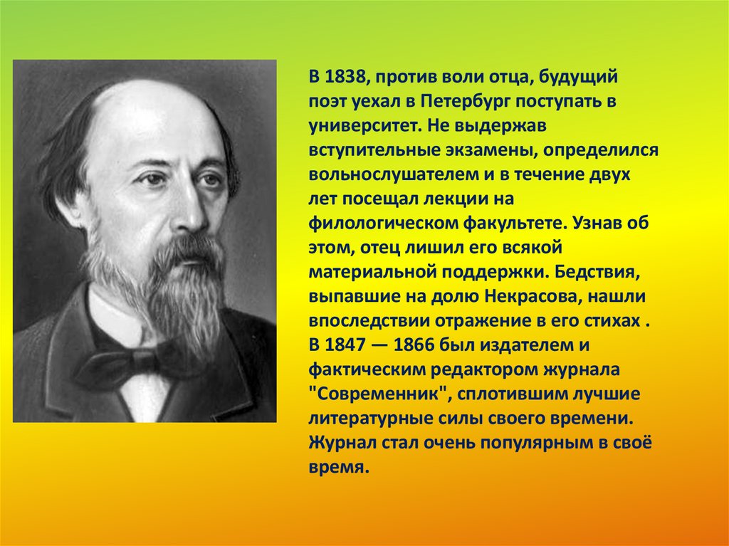 Николай Алексеевич НекрасовРодился 28 ноября 1821 года в