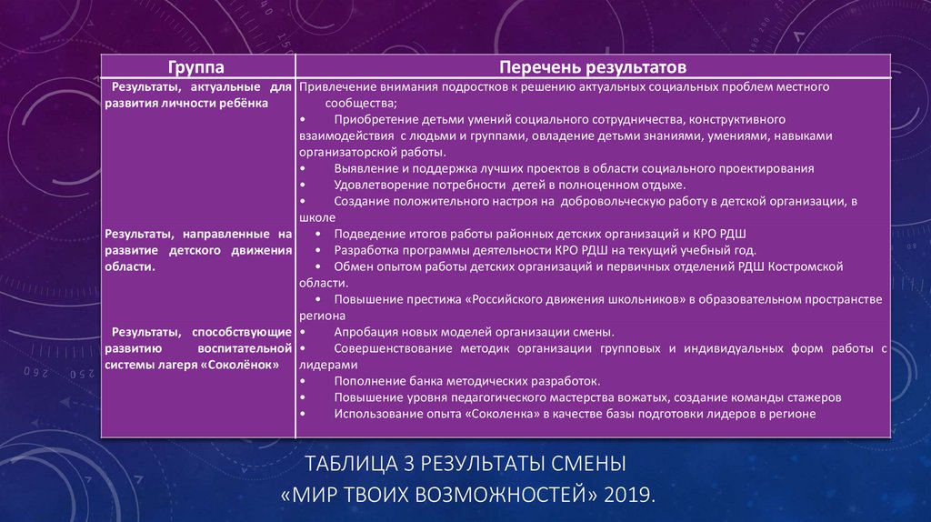 ТАБЛИЦА 3 РЕЗУЛЬТАТЫ СМЕНЫ