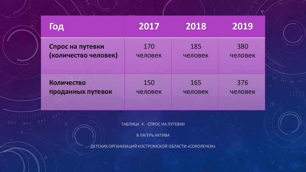 ТАБЛИЦА 4 . СПРОС НА ПУТЕВКИ