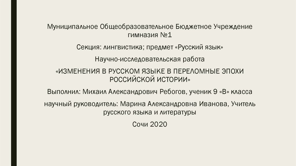 «ИЗМЕНЕНИЯ В РУССКОМ ЯЗЫКЕ В ПЕРЕЛОМНЫЕ ЭПОХИ