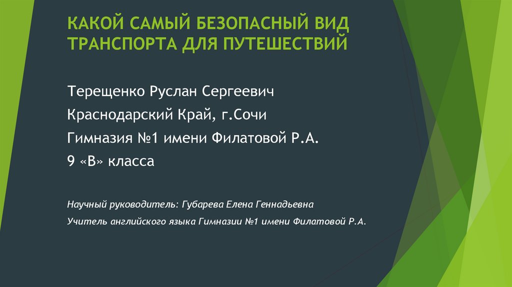 Изучение и выявление самого безопасного видатранспорта для путешествия