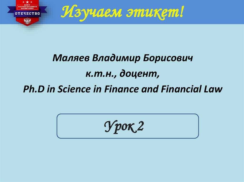 Изучаем этикет!Маляев Владимир Борисович