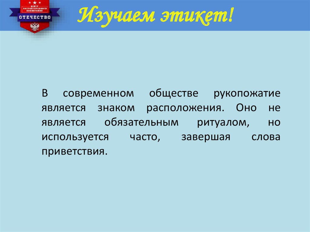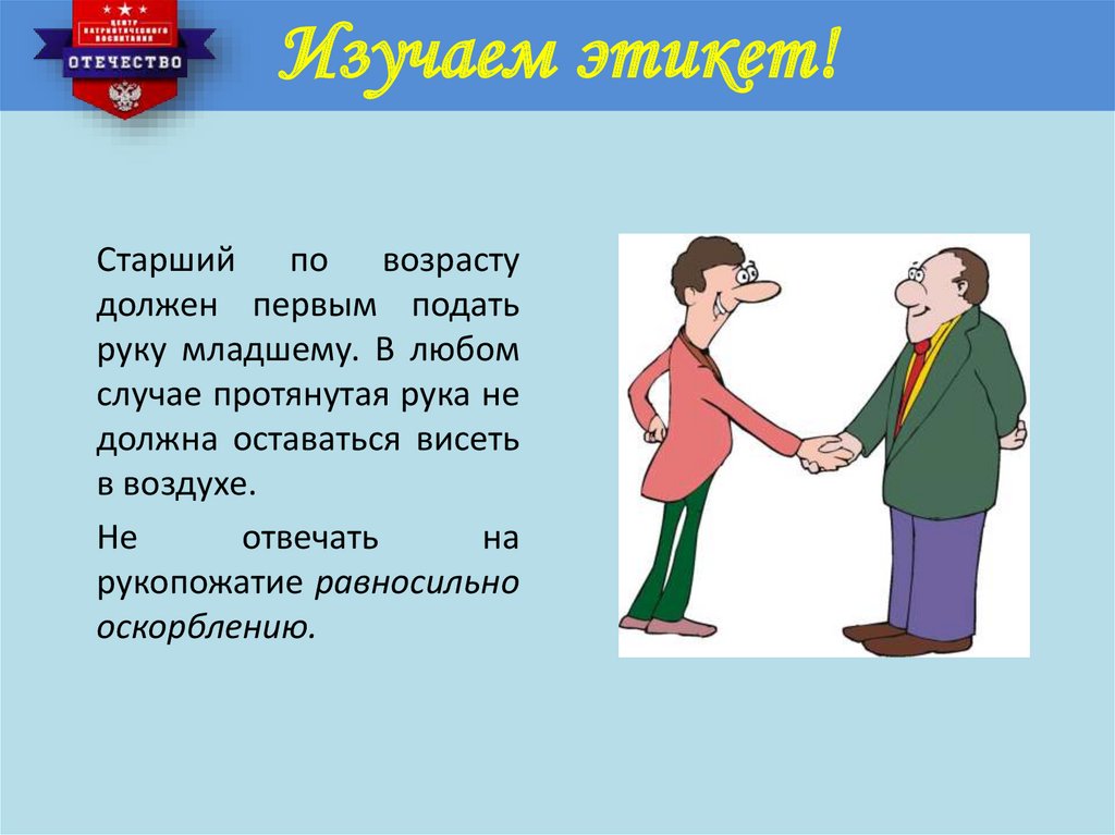 Изучаем этикет!В современном обществе рукопожатие