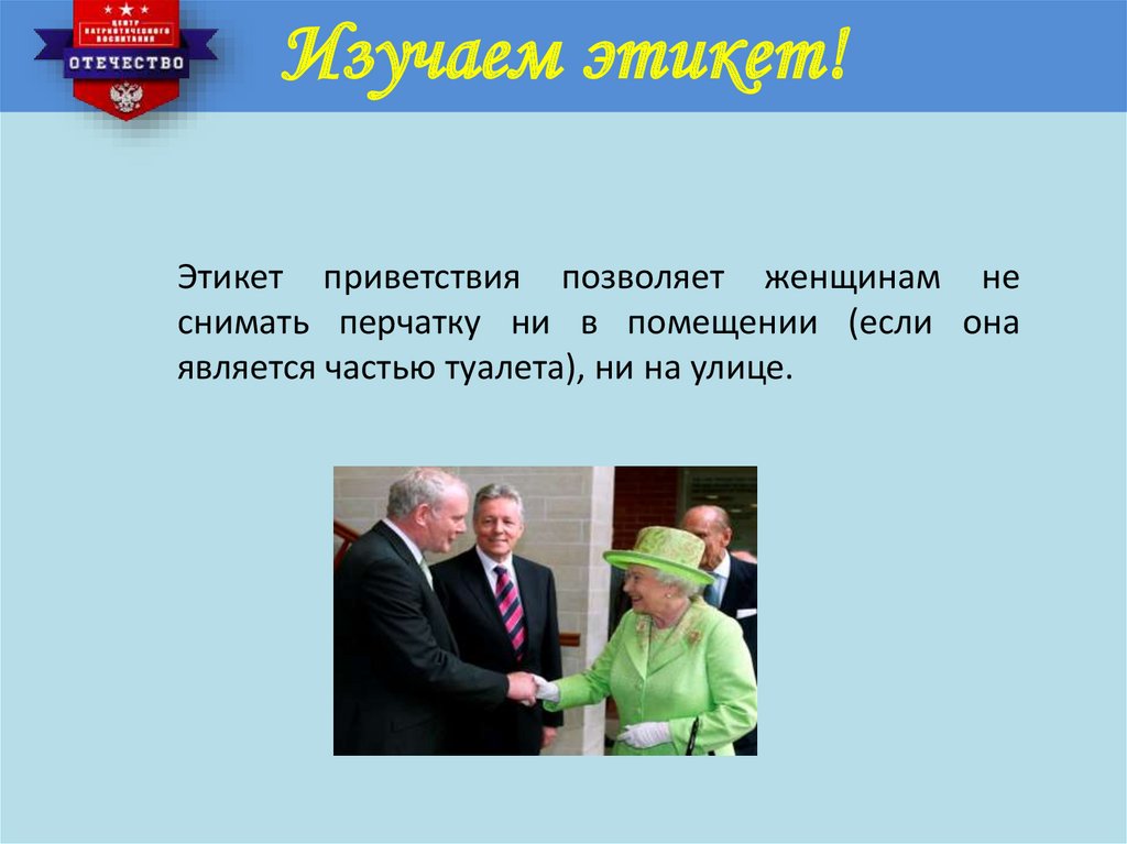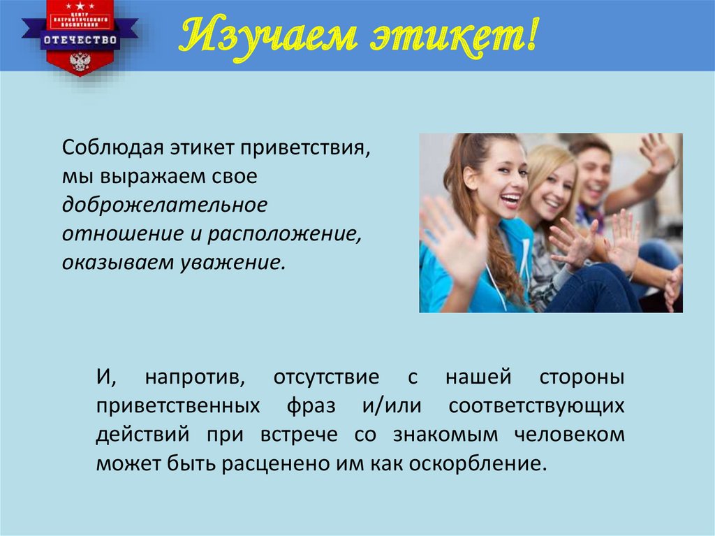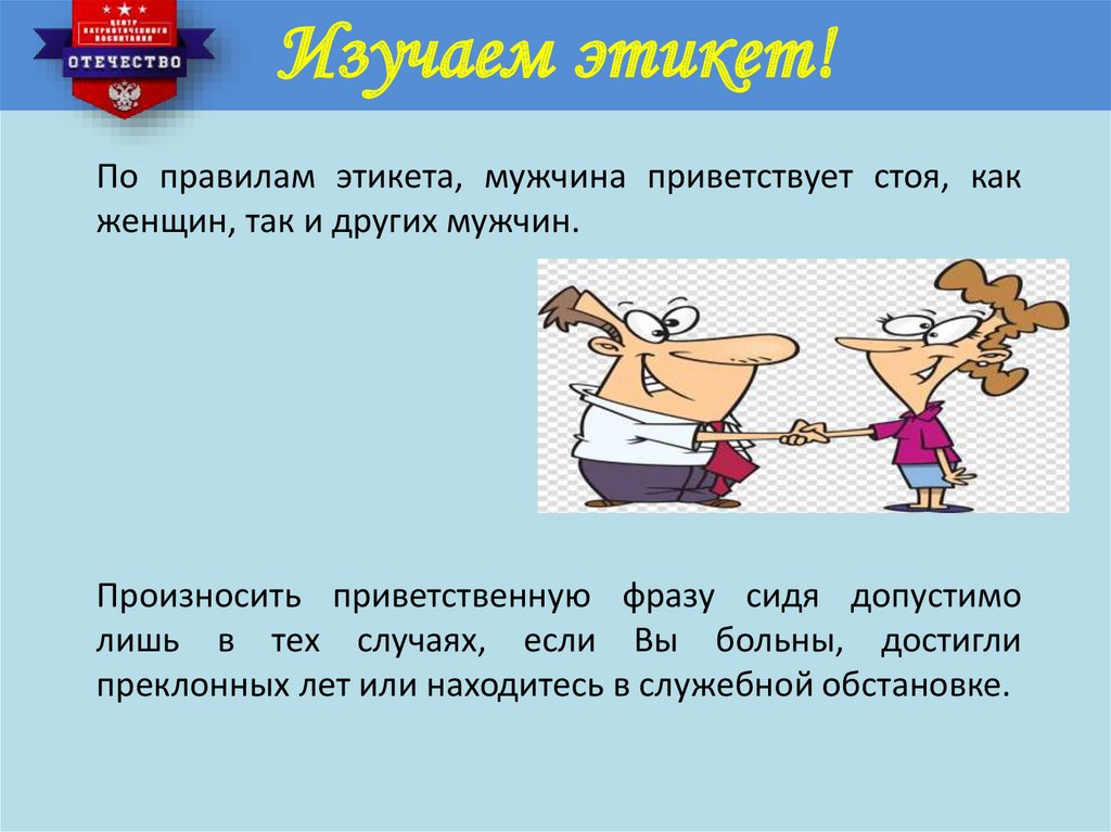 Изучаем этикет!Соблюдая этикет приветствия,