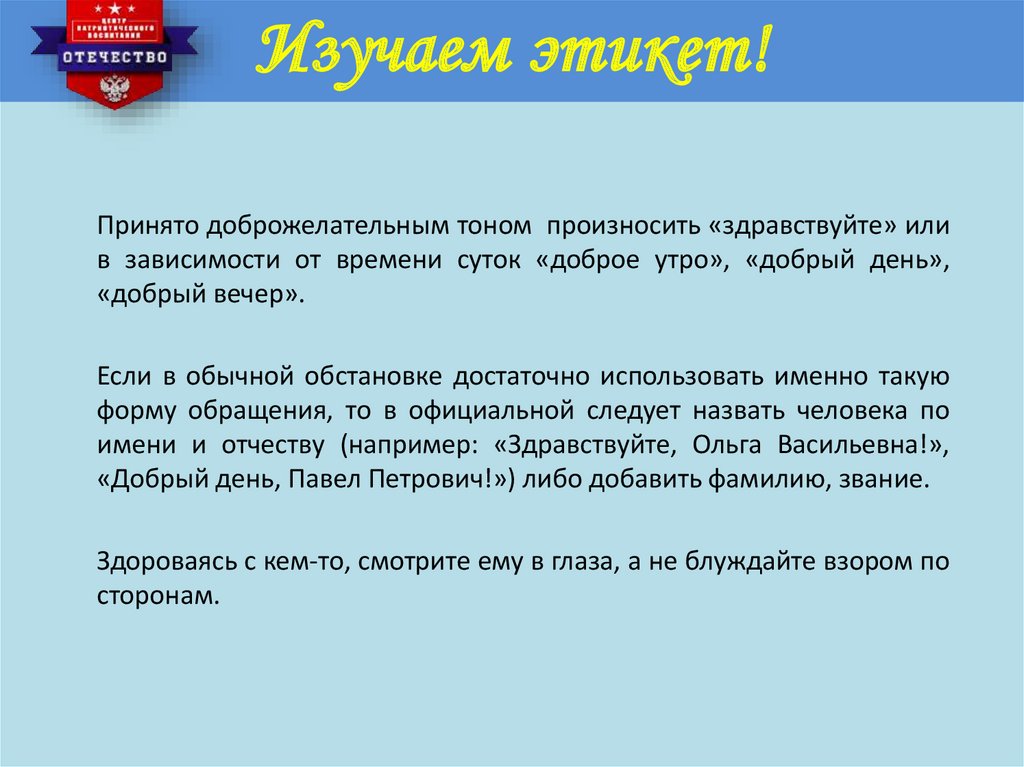 Изучаем этикет!Этикет приветствия: